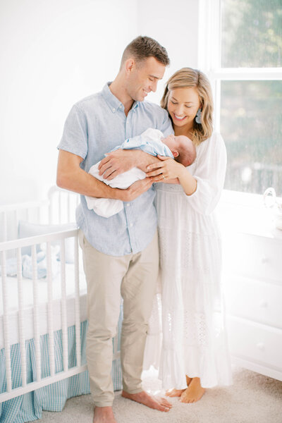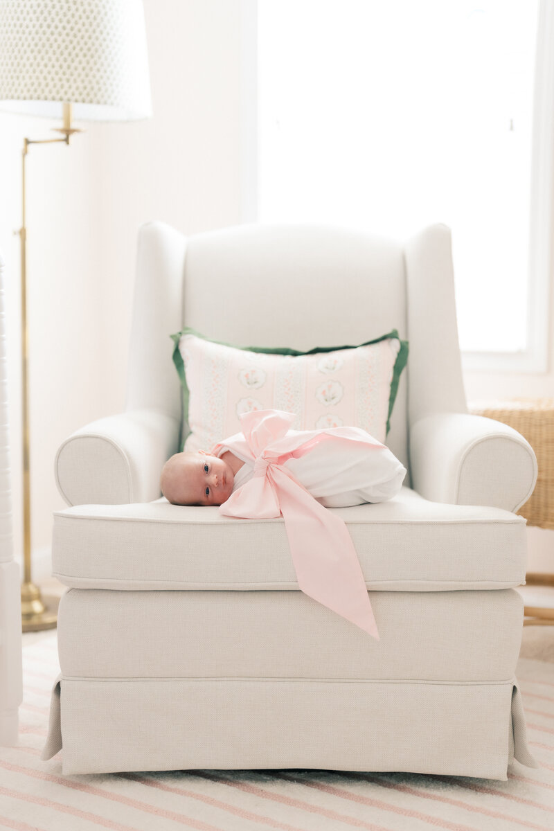 Typically newborn sessions are in the client's home. To get that light and airy look, you'll need at least 1 room with lots of natural light and neutral soft colored walls.